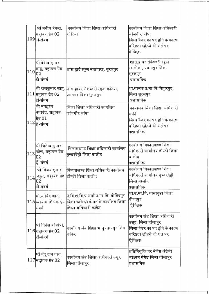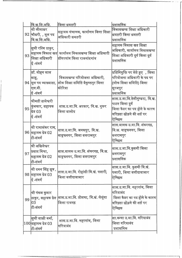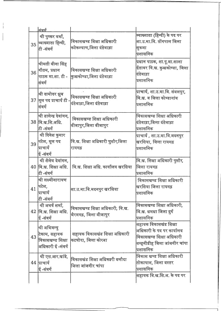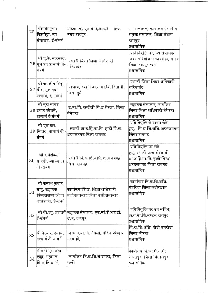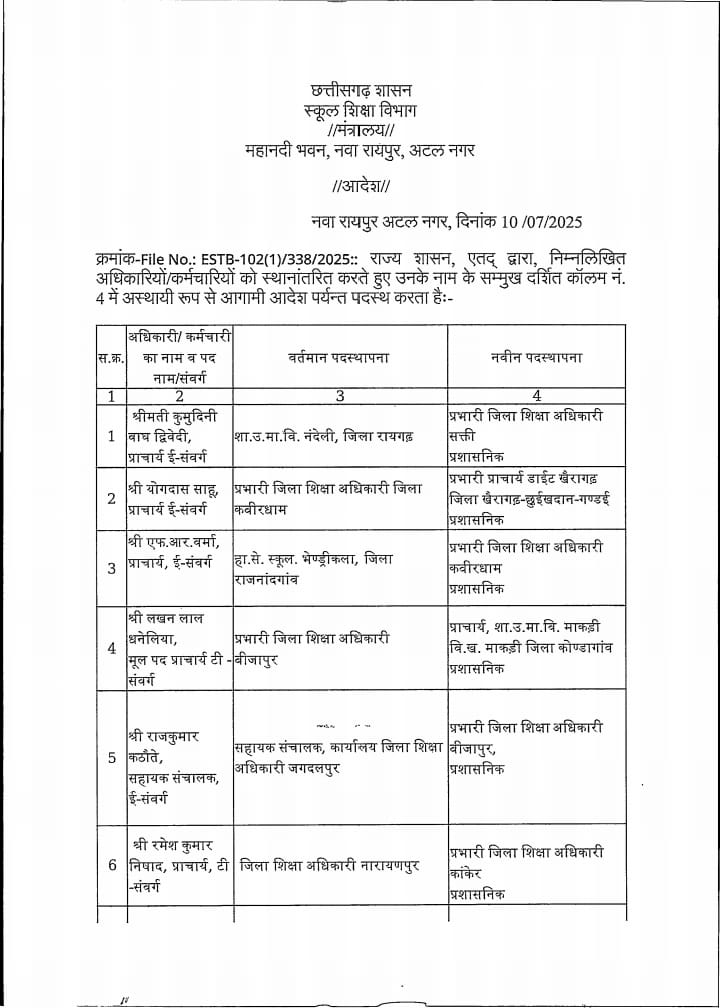 Chhattisgarh स्कूल शिक्षा विभाग: 183 प्राचार्य, उप संचालक और खंड शिक्षा अधिकारी का तबादला Tushar Sahu July 10, 2025 0 रायपुर । स्कूल शिक्षा विभाग ने 183 लोगो का ट्रांसफर किया है। विभाग द्वारा जारी आदेश में उप संचालक, खंड शिक्षा अधिकारी और प्राचार्यों का तबादला किया गया है। ये रही सूची…. Post Navigation Previous शराब घोटाला में सरकार की बड़ी कार्रवाई : 22 अधिकारी निलंबितNext विधायक ने वार्ड में लगाई चौपाल, जनता ने बताई समस्याएं, किया निराकरण More Stories Chhattisgarh साय सरकार के मंत्रिपरिषद के निर्णय Tushar Sahu February 4, 2026 0 Chhattisgarh रायपुर साहित्य उत्सव में छत्तीसगढ़ी काव्य पाठ, लोकभाषा और संवेदना से सजा साहित्यिक मंच Tushar Sahu January 26, 2026 0 Chhattisgarh राजधानी में हर्षाेल्लास के साथ मनाया गया 77 वां गणतंत्र दिवस Tushar Sahu January 26, 2026 0 Leave a Reply Cancel replyYour email address will not be published. Required fields are marked *Comment * Name * Email * Website Save my name, email, and website in this browser for the next time I comment.
