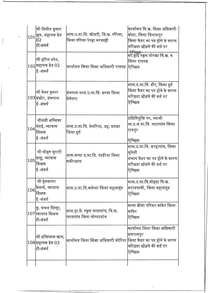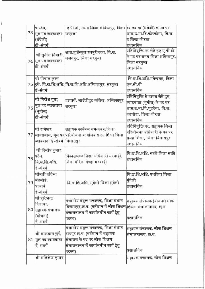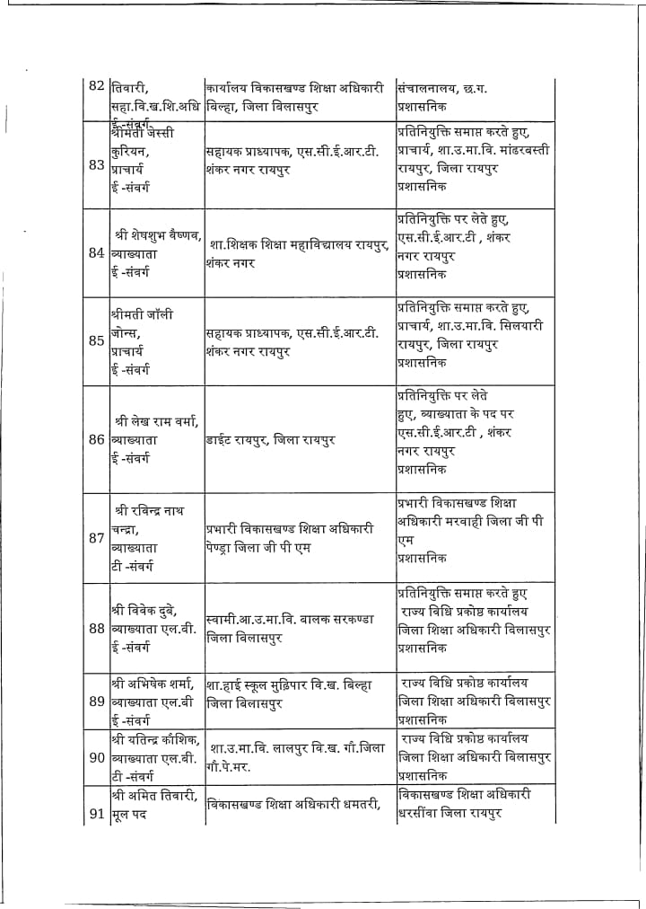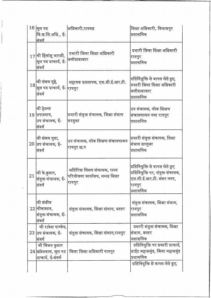 Chhattisgarh स्कूल शिक्षा विभाग: 183 प्राचार्य, उप संचालक और खंड शिक्षा अधिकारी का तबादला Tushar Sahu July 10, 2025 0 रायपुर । स्कूल शिक्षा विभाग ने 183 लोगो का ट्रांसफर किया है। विभाग द्वारा जारी आदेश में उप संचालक, खंड शिक्षा अधिकारी और प्राचार्यों का तबादला किया गया है। ये रही सूची…. Post Navigation Previous शराब घोटाला में सरकार की बड़ी कार्रवाई : 22 अधिकारी निलंबितNext विधायक ने वार्ड में लगाई चौपाल, जनता ने बताई समस्याएं, किया निराकरण More Stories Chhattisgarh साय सरकार के मंत्रिपरिषद के निर्णय Tushar Sahu February 4, 2026 0 Chhattisgarh रायपुर साहित्य उत्सव में छत्तीसगढ़ी काव्य पाठ, लोकभाषा और संवेदना से सजा साहित्यिक मंच Tushar Sahu January 26, 2026 0 Chhattisgarh राजधानी में हर्षाेल्लास के साथ मनाया गया 77 वां गणतंत्र दिवस Tushar Sahu January 26, 2026 0 Leave a Reply Cancel replyYour email address will not be published. Required fields are marked *Comment * Name * Email * Website Save my name, email, and website in this browser for the next time I comment.